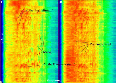 A salacious radiophonic romp, this piece appears to meld EA and BDSM. Two major sonic elements are present almost throughout, vascillating in relative amplitude with recorded conversation. The first is a moog synthesizer being put through its paces with someone going rank on the knobs. The placement of this sound in the stereo field remains centred and slightly to the left.The over-the-topness of the knob tweakage lends itself well to the giddy chaos that one feels through the snippets of the conversation.